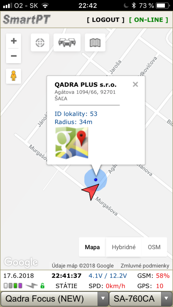 Systém ponúka online sledovanie vozidiel na niekoľkých druhoch mapových podkladov hlavne licencované Google Maps a voľné Openstreet Maps – na PC, v mobilných telefónoch a tabletoch Apple aj Android. Samozrejmosťou je kvalitne spracovaná kniha jázd vo formátoch XLS, alebo PDF. Vysoká presnosť počítadla kilometrov je známou výhodou našich zariadení. Vo verziách s napojením na CANBUS, prebieha synchronizácia počítadla kilometrov s palubným počítačom v reálnom čase. Spoľahlivý a preverený systém s rýchlou návratnosťou!